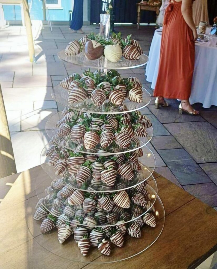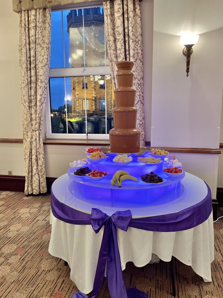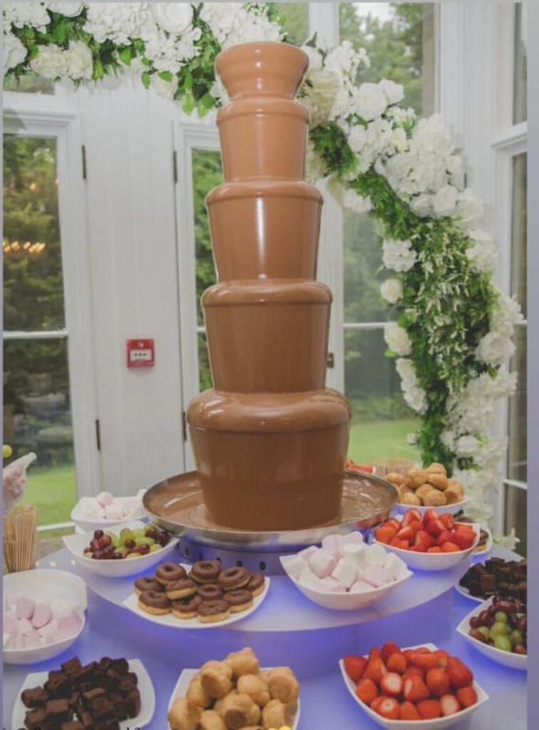 Wedding and event decorator and supplier of sweets treats! … Chocolate Fountain and Candy Cart Hire, Display stands and favours of Belgian chocolate covered strawberries, brownies and more !