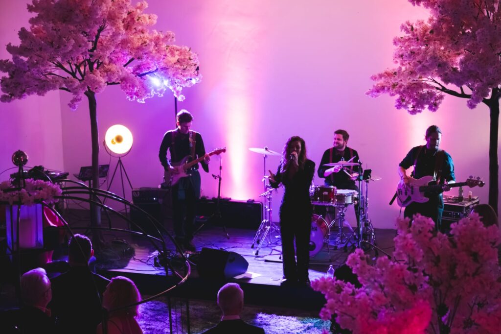 This stripped-back setup creates a warm, elegant atmosphere while keeping the professional energy that defines New Street Groove.